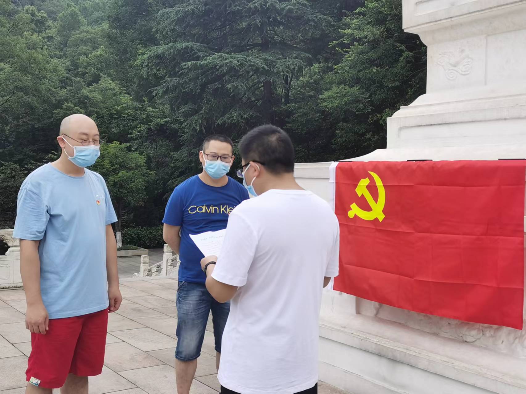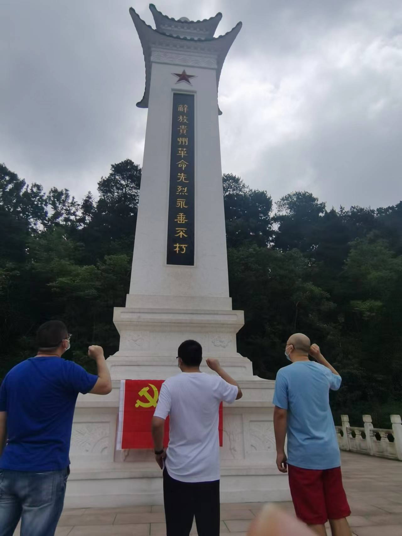 接着,大家徒步来到解放贵州革命烈士纪念碑前,首先,党支部书记李庆忠同志向大家简单讲解了贵州革命烈士纪念碑的历史背景及意义,纪念碑标志着贵州人民对解放贵州省而英勇献身的烈士们的崇高敬意,大家站成一排,庄严肃穆;全体党员同志重温入党誓词。在鲜红的党旗下,同志们佩戴党员徽章,高举右手,庄严宣誓,铿锵誓言久久回荡,重温入党时的初心和奋斗追求。